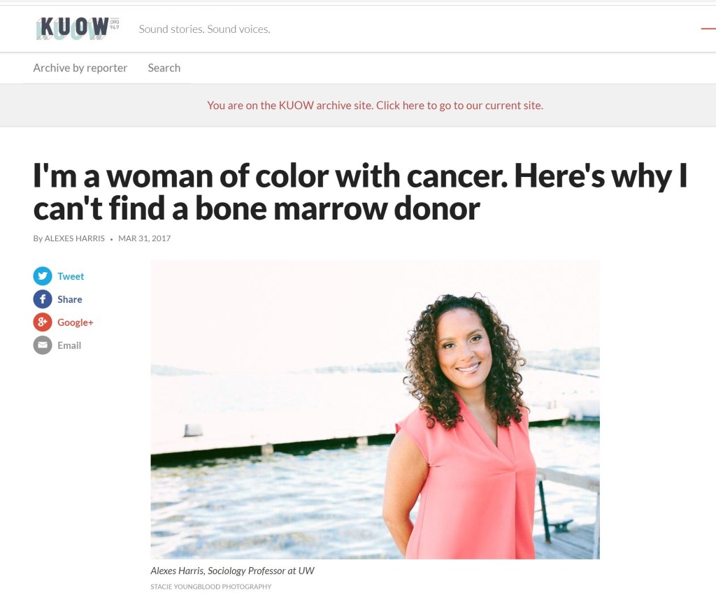 I continue to talk with audiences about my cancer journey to raise awareness about disparities in health outcomes for people of color, to raise awareness of the marrow registry and cord blood donation programs, and to remind those of us with a cancer diagnosis that cancer is not an immediate death sentence – and that we can and should live our lives to its fullest as long as we can.